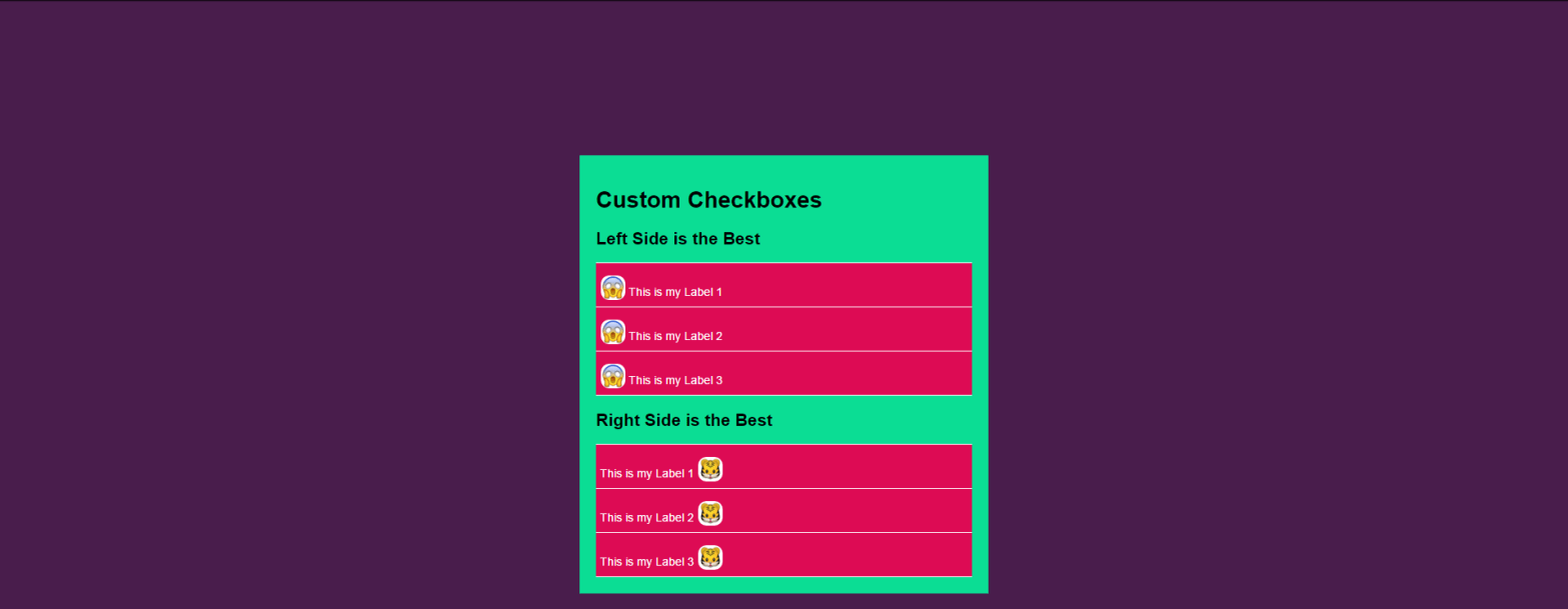 With the result of this method for custom checkboxes, you can put the text or the checkbox anywhere you want. If the browsers fail the support of the method, then the standard checkbox will be seen so the functionality of the form will not be distorted. Also the new custom checkbox does not get in the way of the functionality as you can still check it.
