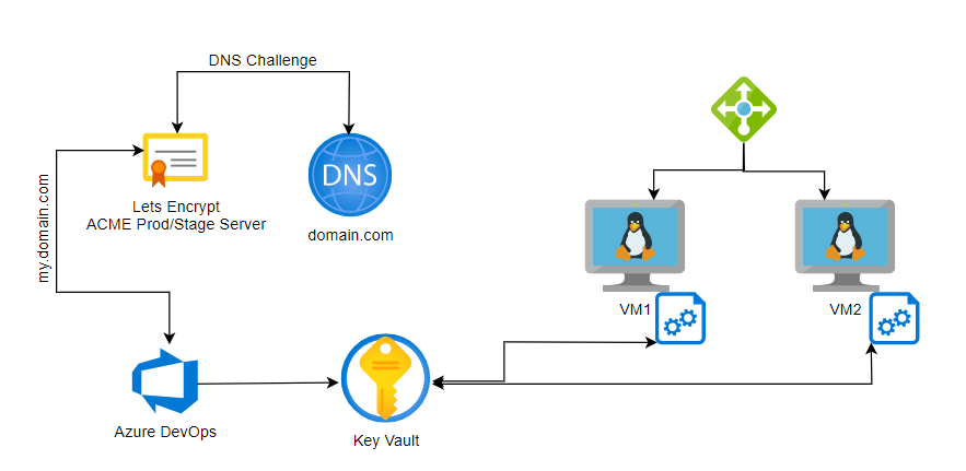 This section will explain the job of Azure DevOps to get the new certificate from Lets Encrypt and store it within the Azure Key Vault.