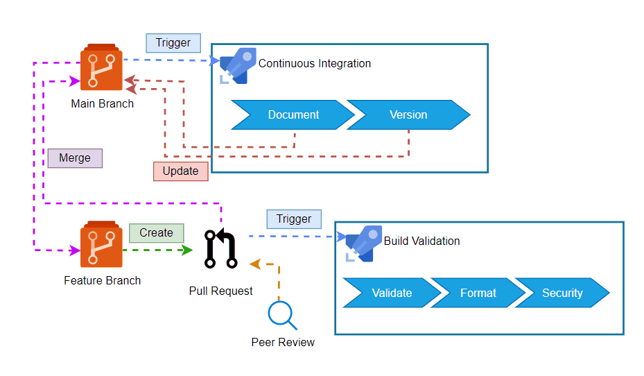 The Build Validation is to validate the code and change are up to the correct standards. This is triggered when a new Pull Request is created, based on the changed Feature Branch. If any of the tests fail then it would fail the build and in turn fail the Pull Request, stopping it from merging.